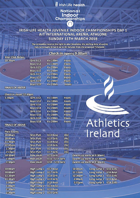 All-Ireland Juvenile Indoors, Athletics Leinster will run their program on the